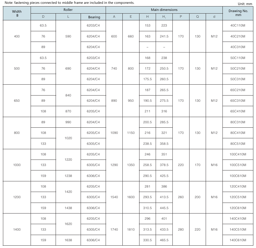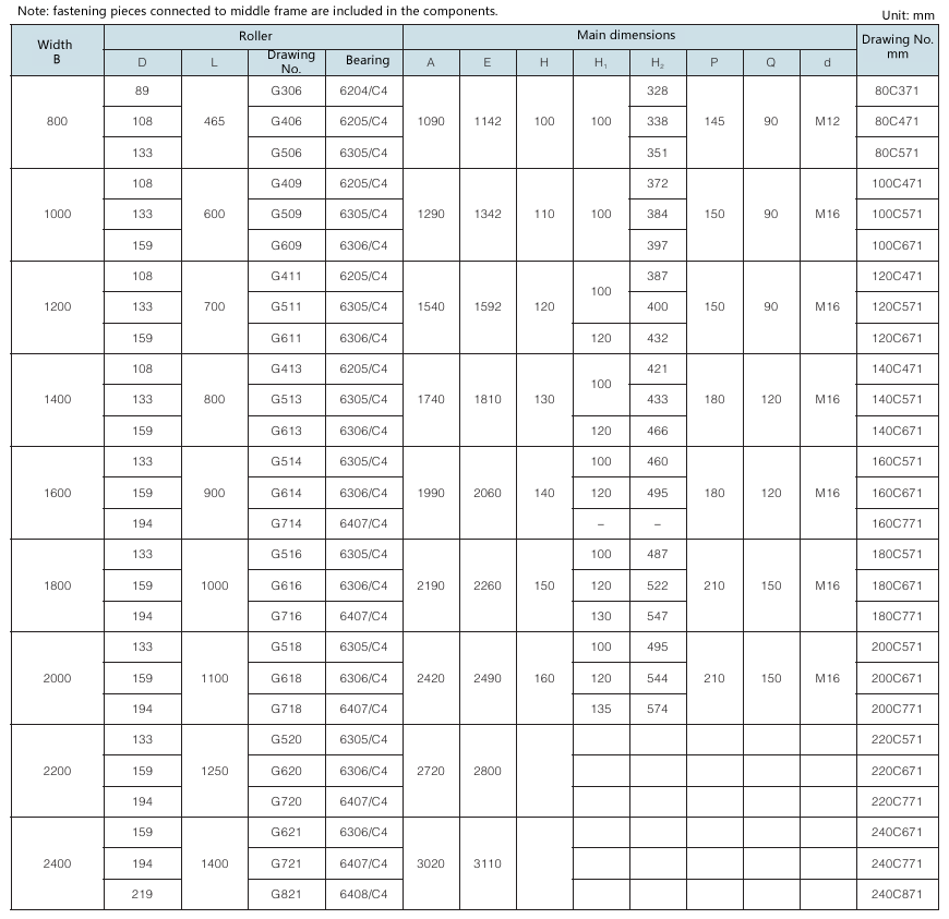 Requirement for drum surface: drawing No. with “G” as postfix refers to smooth face drum; drawing No. without “G” as postfix refers to rubber face drum.