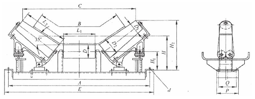 3.9 20°, ±5°transition idler with adjustable trough angle